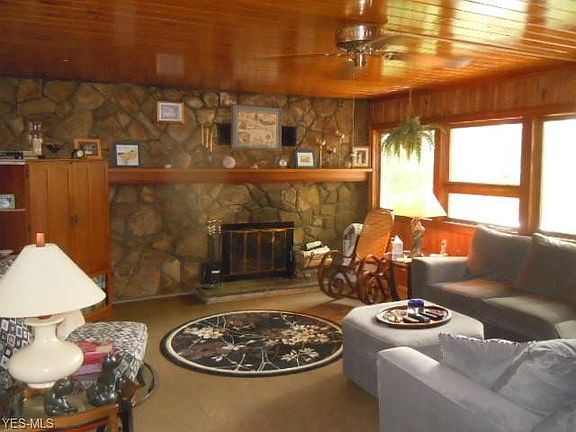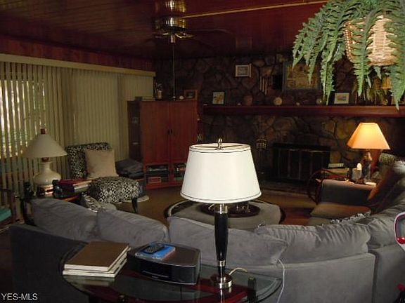 This architectural gem is built on top of a rock quarry wall offering stunning views and unique one of a kind charm! This home is located close to bus lines, highways and all of the Rockside Rd dining and entertainment amenities. This is a raised ranch and offers one floor living once on the main level. The kitchen, dining room and living room are open concept and flow together effortlessly, providing a nice space for gathering. The huge family room with cork floor features a full wall wood burning fireplace and windows on both sides overlooking the balcony and the patio. Enjoy truly stunning views! There are 3 bedrooms and 1.5 baths as well as a first floor laundry room. The home features lots of natural wood finishes for a very rustic feel. The backyard patio is a large outdoor entertaining space and features an electric retractable awning and a cable hookup. The balcony style deck overlooks the front yard and provides another place to gather and lounge. The amazing 1/2 acre lot offers a number of beautiful sitting and entertaining areas connected by a walking path. The flat roof is accessed by a staircase and can be used as a roof top deck to enjoy more stunning views. Updates in recent years include Pella doors and some Pella windows, Trane HVAC system, hotwater tank, garage door, backyard fencing and landscape lighting, whole house exterior painting. Truly a well cared for beautiful home.