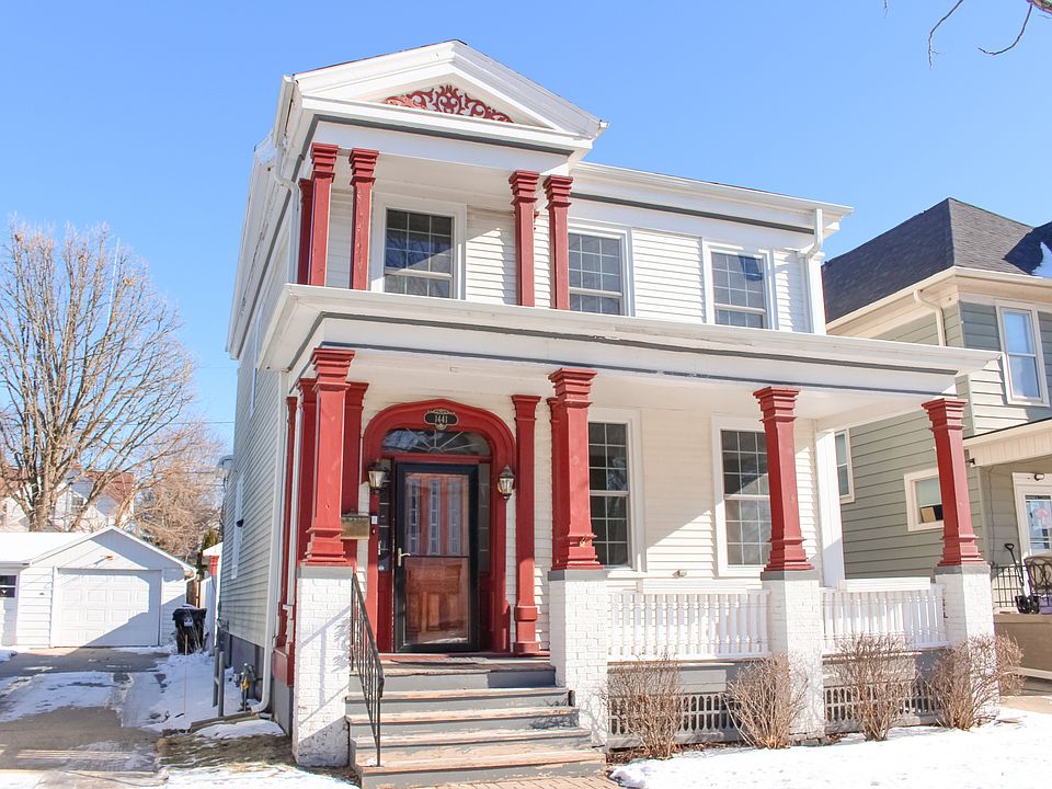 The home features classic radiator heat, providing cozy warmth throughout the winter months. While there is no central air, the home's original design allows for comfortable seasonal living. In-unit laundry machines add everyday convenience, and a 2 -car garage with driveway offers ample parking and storage, an uncommon bonus for a home of this era.