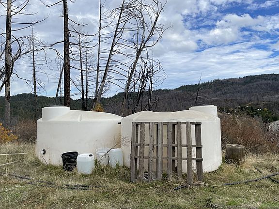 This fenced 2.08 acre parcel has a great location just 2 minutes off HWY 36. It sits in a burn scar, but hazard trees have been removed in the developed area. This property has multiple storage sheds, a new well that produces 10GPM per owner, and two storage tanks. A small garden area is established. The lower part of property is accessed off Pipeline Road and the upper part is easily accessed off Southridge. Septic and power need to be developed withs solar or generator.