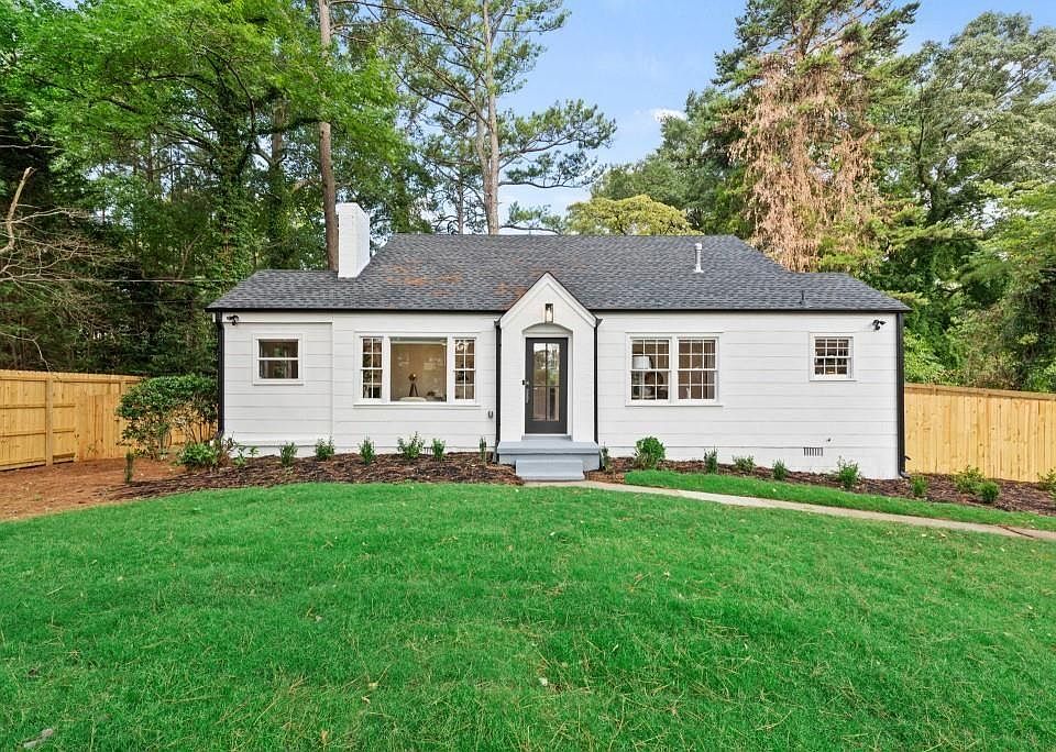 Experience upscale living in this gorgeous 3-bedroom, 2-bathroom bungalow in highly sought after Midway Woods neighborhood, just 8 minutes from downtown Decatur. This fully renovated home has been meticulously designed to blend modern sophistication with timeless elegance, showcasing thoughtful updates and enhancements throughout. Upon arrival, the property greets you with a newly installed custom automatic wrought iron gate and privacy fence, offering both security and exclusivity. Inside, natural light pours through the open spaces, with Nordic-style whitewash hardwood floors connecting the living room, dining area, and chef’s kitchen. A light-filled office with a glass-paneled door sits next to the living room’s fireplace, providing a quiet space for productivity. The kitchen includes Samsung stainless-steel appliances, quartz counters, a walk-in pantry, built-in wine cooler, glass rinser, and pot filler, to name a few. It opens to an expansive deck, extending the living space outdoors to a secluded backyard with a fire pit, soffit lighting, and landscaping—a perfect setting for both hosting gatherings or peaceful relaxation. In addition, the home features a fully encapsulated crawl space with a sump pump, adding to the property’s long-term value and peace of mind. Softly glowing Parisian-inspired milk glass globe fixtures and dimmable recessed lighting (with a Night Mode feature) warmly illuminate the home, evoking an inviting ambiance. The primary suite, accessible via a private staircase, features vaulted ceilings, a custom built-in library, pocket doors leading to a walk-in closet and adjacent laundry area, and a Japandi-style spa-inspired bathroom with a freestanding soaking tub, walk-in shower, and dual walnut vanity. Two large secondary bedrooms on the main floor share a well-designed full bathroom with a floating vanity, slat accent wall, and pendant lighting. With an ideal balance of privacy, design, and functionality, this home is a rare find, with upgrades and enhancements that make it even more special.