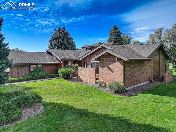• Rare rancher with main level living in Kissing Camels located on the golf course with spectacular views of the S 6th and 8th holes, Garden of the Gods, Pikes Peak and the Front Range. • These exceptional views are visible from the back patio, living room, dining room primary bedroom • The lot is over 14,000 square feet and it backs to the fairway yet enjoys a buffer of privacy with a few mature trees and landscaping. • The floor plan is open and has vaulted ceilings with beams and numerous built-ins and has two in-suite bedrooms on the main, a large living/great room, spacious kitchen that has an oversized pass-through bar to the separate dining room. The dining room walks out to a covered, partially enclosed patio. • The home Is an estate sale and needs esthetic updating however the potential is significant • Located in the Park subdivision, the landscaping is maintained by the HOA and makes the property low maintenance • The home has an oversized 2 car garage with room for a golf cart • There are 3 retractable awnings across the patio, the great room and the primary bedroom. • The roof was replaced due to hail in 2018 with laminated architectural shingles, using a heavy mat base and gutter guards. The Roof shingles are CertainTeed Presidential Shake IR (impact resistant) • The two furnaces have been replaced in 2013, the driveway has been paved, the hot water heater replaced, and the side patio brick wall raised to roof height, with glass block accents to ensure more privacy as well as numerous other improvements Separate Membership required for Private Garden of Gods Club, and use of the majority of its faciliities.