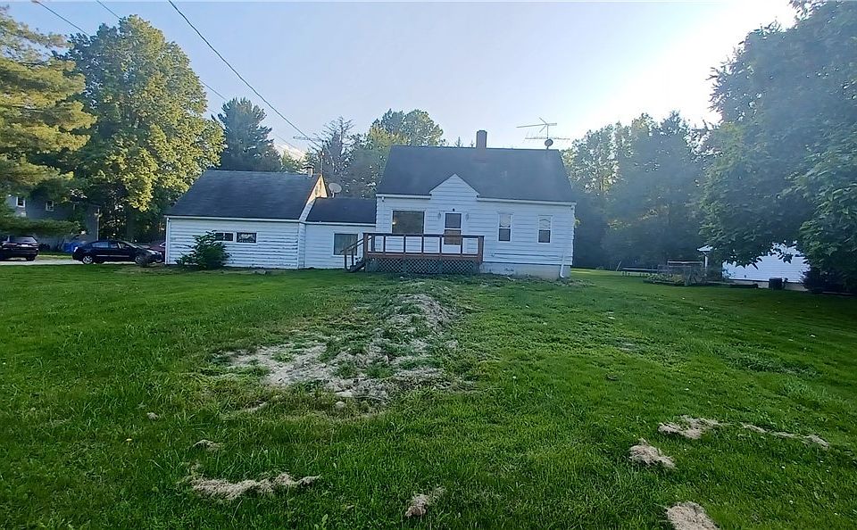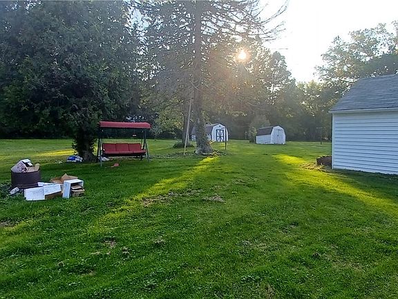 Almost one acre in Champion school district. This unique house has a breezeway/enclosed porch, and 2 sunken Family rooms. One Family Room has a gas Fireplace (hidden behind TV) and the other a wood burning stove. Wood floors in Living Room and all Bedrooms. Large picture window in Living Room. Two First Floor Bedrooms with Finished attic as master bedroom. Full bath on first floor and second floor has a shower and the toilet needs plumbed to make another full Master bath. New Public Sewer just installed. 2 Sheds. Concrete drive way with turn around area. Stove, refrigerator, washer and dryer stay.
