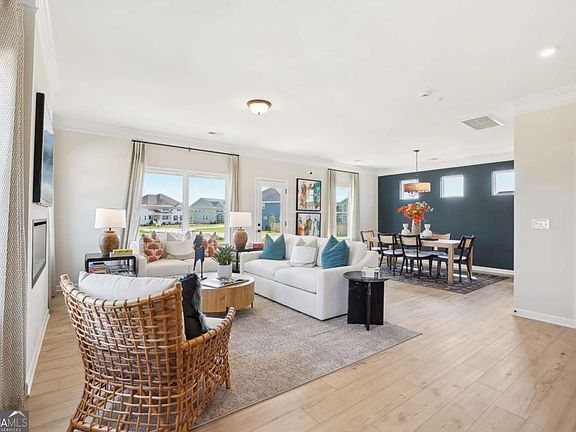 Move in Ready January 2026! The Greenbrier II plan by Smith Douglas Homes in the new community, Trellis Park. This stunning home boasts a variety of features that will surely capture your heart. The main level showcases a luxurious kitchen, complete with sleek granite countertops and an island illuminated by pendant lighting, perfect for casual dining or entertaining. The kitchen seamlessly flows into the spacious Family Room, which features an electric fireplace and access to the extended patio, that overlooks the backyard. Upstairs, you'll find the Owner's Suite, an elegant retreat with double vanities and an upgraded bath that includes both a separate garden tub and a large shower. Photos representative of plan not of actual home. Our decorated Model Home and Sales Center are open daily. Mon, Tues, Thurs, Fri, Sat (10am-6pm); Wednesday (1pm-6pm); Sunday (1pm-6pm). Come visit us today!