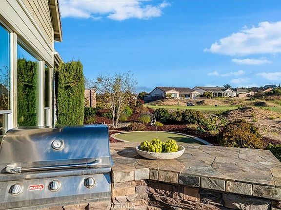 Experience the charm of this English Coastal Cottage blended with executive-level luxury, located at the end of a quiet cul-de-sac at the prestigious Monarch Dunes Golf Course Resort. This stunning Morro Model home offers approximately 2,812 square feet of thoughtfully designed living space on a generous 9,474 square foot pie-shaped lot. With 3 spacious bedrooms, 2.5 bathrooms, a formal dining room and gathering nook with a dual-sided fireplace, this home is tailored for both comfort and entertaining. Step outside into an oversized, professionally landscaped backyard oasis designed to accommodate fabulous outdoor living. Highlights include a custom built-in barbecue, putting green with turf grass, large outdoor spa, mature trees, and a covered patio—perfect for warm summer nights and holiday celebrations. The open floor plan is bathed in natural light from expansive windows, offering panoramic views of the golf course and breathtaking sunsets from the moment you step through the front door. The kitchen is designed to be the heart of the home, and features Monogram stainless steel appliances including double ovens, a built-in side-by-side refrigerator, gas cooktop, microwave, slab granite countertops, a large center island and two walk-in pantries. The great room and den provide ample space for gatherings of any size. When you are ready to relax, primary suite is privately situated at the rear of the home, offering tranquil golf course views and a luxurious ensuite with a large soaking tub, separate shower, dual vanities, custom tile work, and a spacious walk-in closet. With extensive upgrades, including OWNED SOLAR, air conditioning, new water heater, and new outdoor lights, this home offers both elegance and efficiency. Located within Trilogy at Monarch Dunes, this property is part of a vibrant resort-style community that celebrates lifestyle living with world-class golf, scenic trails, fine dining, and engaging social events. Come discover the perfect blend of sophistication, comfort, and coastal beauty.