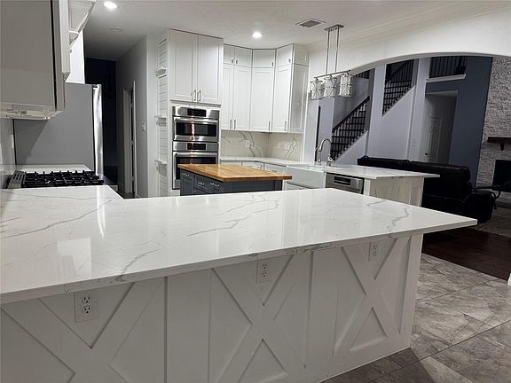 Your Dream Home is waiting just for you in Houston !! Enjoy cooking in this stylish kitchen with all BOSCH Appliances, Beautiful Quartz throughout all the kitchen counters and backsplash with a Pot Filler. Dinning Room has a beautiful accent ceilings. Master Bedroom has vaulted ceilings with a Gorgeous Master Bathroom and Built ins Closet. Formal Living Room has beautiful crown molding with High Ceilings and electronic fireplace. Upstairs you have a beautiful Theater with your own Bar area and 3 Bedrooms with 2 Full Baths. Garage was converted in to a GYM with carpet and AC. Covered Patio with Fireplace and Nice Landscaping. New Electrical Box with Generator connection.