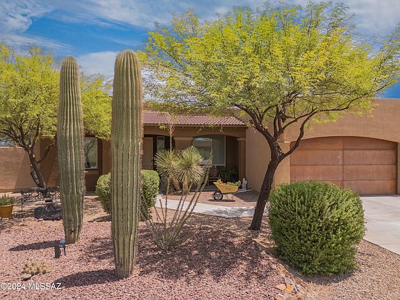 Welcome home! Amazing 4BR/2.5BA home with a backyard oasis, outdoor kitchen, sparkling salt water pool, and Rincon Mountain views. This home sits on .84 of an acre with rolling hills topography, a thick desert wash area that runs at the back of the property and space between neighbors to enjoy the north facing backyard patio. Large kitchen with two islands, great room with adjacent dining room for entertaining, split bedroom plan, and complete with very nice finishes. Large Owner's Suite bedroom, bath and custom walk in closet. North/South facing and backyard looks right at the Rincon Mountains. Quiet cul-de-sac street.