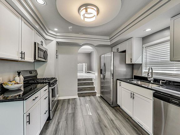 This newly rehabbed split level home has 3 bedrooms, 2 full baths, and a finished basement with a huge yard. Thought, time and care have been taken remodeling this home with modern finishes throughout. Walking in the front door you are greeted with an open concept; a combined living room, dining room and kitchen. The kitchen leads you to the upper level and the separate family room. Don't forget about the finished basement, ready and waiting for your ideas. This home has a new kitchen, baths, HVAC, water heater, paint, fixtures and electrical. The living room has a new electric fireplace and comes with the TV mounted above. The flat roof has been resealed as well. These days outdoor space is a top priority. This home has plenty of backyards with a storage shed. Be sure to check out the 3D walk through and come by to take a look!