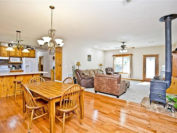 This amazing property features two homes on three private acres at the end of a quiet street just inside the city limits. This property also boasts a heated and partially cooled 30 x 50 shop with 10' overhang and a half bath on its own septic system. Additionally, the property offers a storage building, a combo carport and storage shed, chicken coop, cement pad and electric for RV, and a second carport ideal for boat or additional parking! The 1896 SF main house features 2 bedrooms and a formal office that could serve as a third bedroom, 2 full baths, and a sunroom. Inside you'll appreciate the custom cabinets, solid-surface Corian Countertops, spacious pantry, solid wood doors, custom trim work with fully cased windows and crown headers with plate stands, plush carpet, wood-burning fireplace and wood flooring. The 911 SF guest house offers 2 bedrooms and a full bath and is perfect for extended family, or provides great income potential as a long-term or vacation rental. You don't want to miss this one!