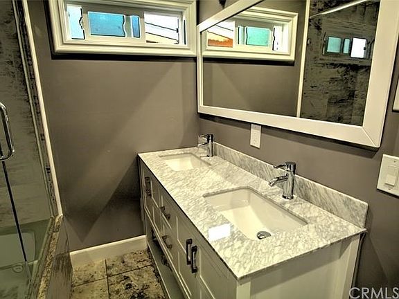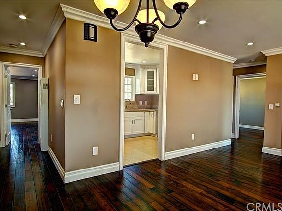 Spectacular home developed from fine craftsmanship through a gut remodel in a desirable area of Gardena. The whole house is elegantly adorned with large crown and base moldings accentuating the gorgeous hardwood floors that are used in all the rooms. The kitchen has beautiful cabinetry with quartz countertops and floor, also stainless steel microwave exhaust hood and dishwasher. Both bathrooms have the "wow factor" they were built with natural stone, all glass showers, and adorned with beautiful fixtures that include ceiling mounted rain-style showerheads. The elegant master bathroom is also outfitted with a two sink vanity and an alluring Jacuzzi. The spacious master bedroom features a lighted closet with beautiful glass doors and a sliding door with built-in blinds that opens to the big backyard. The house facade is accentuated with beautiful LED lighting and elegant ledge/flagstone.