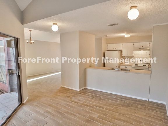 This duplex has a simple layout that includes everything you need in a home. Beautiful covered patio with privacy fence in the back AND front yards. High ceilings and plenty of large windows for great natural lighting. Kitchen includes refrigerator. Washer and dryer connections are also available inside the unit. Open floor-plan with fireplace in the living room. No carpet throughout.