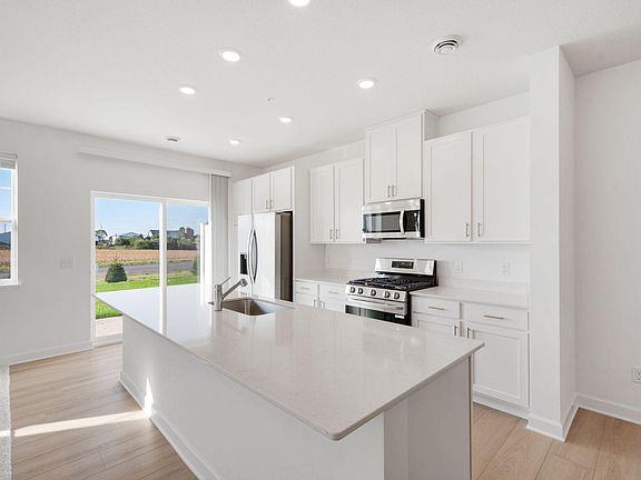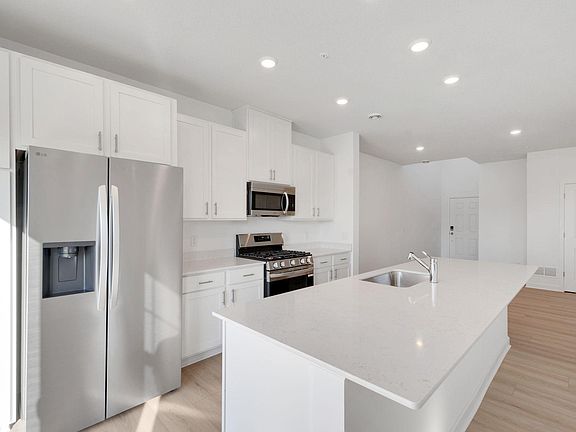 Home is complete and move in ready! Ask about savings up to $5,000 when using Seller's Preferred Lender! This new two-story townhome is an interior unit that features a modern design with a south-facing back patio for indoor-outdoor living for indoor-outdoor living. The first floor offers an open-plan layout among the Great Room, dining room and kitchen. Upstairs are two secondary bedrooms and a spacious owner’s suite. Includes Lennar's home automation features and full HOA maintenance for lawn care, snow removal, garbage/recycling, community irrigation and access/upkeep of future amenities to make homeownership life as easy as possible.