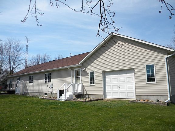 Beautiful 3-5 bedroom, 1 and 3/4 bath home with jetted tub on 1.37 acres. This home features a full, finished basement with 2 possible bedrooms or 1 bed and a media/rec room. Large, 2-car garage with detached pole barn, large side patio and cute deck in the back. Kitchen has an island with a stove inside, oak cabinets and recessed lighting. Lots of storage space and utility sink in basement.