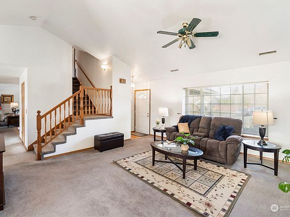 Welcome home! Approximately 1784 square feet of living space. 3 bedrooms, 2.5 bathrooms, vaulted ceilings, tons of natural light. All appliances stay. Level 14,412 square foot corner lot with large storage shed, RV parking, sports court, covered patio, 3 car garage, close to walking/biking trail. Sumner Schools.