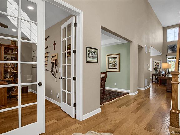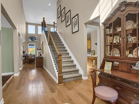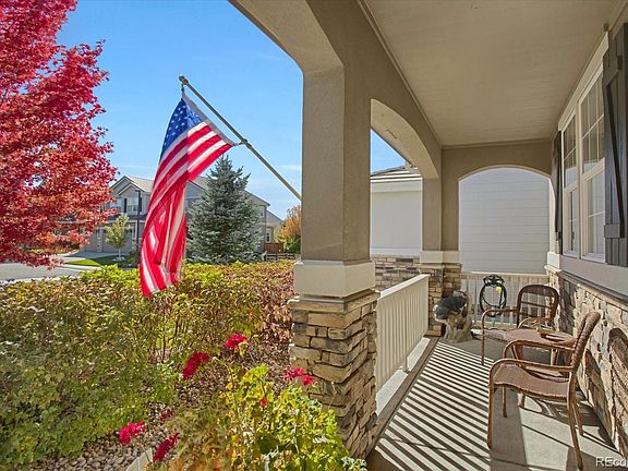 Beautiful home in a fabulous Parker community, Stepping Stone! The home features a main floor primary suite, professionally landscaped yard with putting green and spectacular water fall to create a peaceful oasis on either the deck or lovely patio next to waterfall! New exterior paint and deck was just sanded and stained. In addition to the 3 bedrooms there is a main floor office and loft upstairs, either could be converted to 4th bedroom if needed. Custom shelving/cabinets in great room and primary walk-in closet. Kitchen/great room combo is perfect for entertaining or enjoying time with family. Hickory cabinets, stainless appliances and granite counter tops in the kitchen. Large center island with breakfast bar and eat-in kitchen. Butlers pantry between kitchen and dining room provides additional cabinets and convenience when entertaining. Laundry room conveniently located next to primary bedroom includes upgraded cabinets and deep, utility sink. Open and bright floorplan provides convivence of main level living with benefit of additional bedrooms and loft upstairs if needed. Separate furnace for upstairs allows for greater energy efficiency and temperature control. Hardwood floors flow throughout the main level except for the primary suite. Wonderful community pool, park and clubhouse with in walking distance. Extensive trails through out the neighborhood and connecting to the East-West Regional Trail. The East-West Regional Trail connects Highlands Ranch, Castle Pines, Lone Tree and Parker.