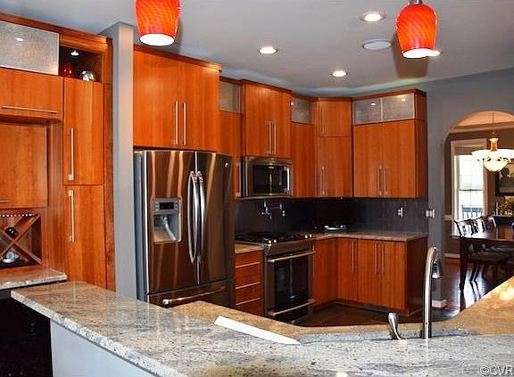 Welcome to Edgewater at The Reservoir. This meticulously kept home is nestled near the back of the subdivision in a peaceful setting. This home has a sense of grandeur on the first floor with hardwood floors, crown molding, tray ceilings and chair railing, all with 9 ft ceilings. The formal dining room opens to the spectacular kitchen that features custom cabinets, slate floors, granite countertops and stainless appliances. It also boasts a wine refrigerator. The family room, off of the kitchen, has a cozy feeling, with a fireplace and an abundance of natural light. Your spacious owner's suite features a sitting area, fireplace, tray ceiling and stately columns. The master bathroom is a dream, with separate vanities, toilets and dressing areas, large walk-in closets and breathtaking pass through shower. The second floor also features 3 additional bedrooms and additional bath. There is a third floor bedroom with a bathroom, perfect for guests or older children. It would also be a perfect game room or media room. The sound system is also built in on all three levels. Enjoy the accomplished landscaped lawn while relaxing or grilling out on the deck. Expect to be impressed!