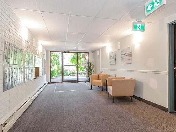 Top floor north facing 624 sq. ft. 1 bedroom apartment. Affordable and centrally located near shopping, transportation, and much more. Two Pets either 2 dogs, or 2 cats, or one of each. No size restrictions indicated. Rentals allowed for a minimum of 6 months. No short term rentals. Propane and gas BBQ's allowed. Parking allocated by Council. Storage allocated by Council. Original condition.