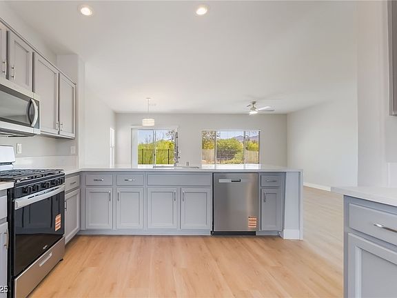 This is a completely remodeled turnkey Sun City Anthem 55+ Community and home that offers the lifestyle you've always dreamed of. Featuring Granite Kitchen and Bathroom Countertops. Brand New Refrigerator, Stove, Microwave, Dishwasher, and Washer and Dryer. New Flooring, Baseboard, Paint, Carpet and Ceiling Fans throughout the home. The Backyard also features Maintain Views for those mornings or evenings you just want to sit back and relax with some great scenery. Sun City Anthem community residents enjoy access to resort-style amenities such as indoor and outdoor pools, a fitness center, tennis and pickleball courts, and a wide variety of social clubs and events. The HOA also maintains the front and backyard landscaping.