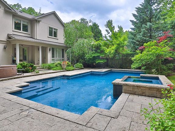 Welcome to this exquisite 5-bedroom executive estate, nestled on an impressive 58' x 219' pie-shaped, tree-lined lot with an impressive 100' across the back in one of South Mississaugas most coveted enclaves Mineola West. Offering over 4,500 square feet of elegantly curated above grade living space and partially finished 2161 sqft finished basement, this distinguished residence blends timeless sophistication with modern comfort, crafted for the most discerning buyer. From the moment you enter, you're greeted by a grand foyer that flows seamlessly into a sun-drenched formal living room with a gas fireplace. The formal dining room offers a W/O toa charming covered porch, perfect for elevated entertaining or al fresco dining. At the heart of the home lies the chef-inspired kitchen, equipped with premium built-in stainless steel appliances, a 5-burner gas cooktop, centre island, and inviting breakfast area overlooking the grounds. Designed for exceptional living and entertaining, the sunken family room transforms into a private cinema with a built-in screen media console, 4K projector, and ambient gas fireplace the ideal space for family movie nights or relaxed evenings in. Step outdoors to your private backyard oasis, beautifully landscaped and complete with a gunite saltwater pool, integrated hot tub, and lush greenery offering complete serenity and seclusion. The lavish primary suite overlooks the tranquil backyard and boasts his/hers W/I closets and a spa-inspired 6-PC ensuite featuring a deep soaker tub, oversized glass shower, and his/hers vanities. Upstairs, you'll find five generously proportioned bedrooms, including one with its own private 3-piece ensuite. A secondary upper-level lounge offers the perfect setting to unwind with family before bedtime, or as 5th bedroom. An exceptional opportunity to own a landmark residence in one of the GTAs most exclusive neighbourhoods, where refined taste meets everyday luxury.