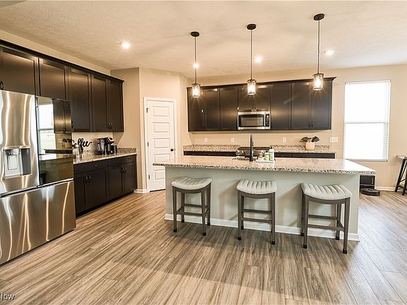 Welcome Home! Built in 2023 and situated on almost an acre, this stunning Drees-built colonial is packed with upgrades and thoughtful design touches throughout. Offering 4 bedrooms and 3 full baths, this home perfectly blends modern style with everyday comfort. Step into the spacious eat-in kitchen featuring a 4-foot bump-out, granite countertops, soft-close cabinetry, pendant lighting, and high-end appliances—a dream for any home chef! Cozy up by the warmth of the fireplace with an upgraded 42-inch insert and and floor to ceiling custom stone wall. Additional elegant accent walls add personality and charm. The home features upgraded LVT flooring throughout, tray ceilings in the primary suite, and a luxurious “super shower” with 35-inch raised counters in the en-suite bath. Each bedroom boasts a walk-in closet, ensuring ample storage space. The finished basement includes extra HDMI outlets, surround sound, and a negotiable projector and screen, making it the perfect entertainment hub. Step outside to find a 10x20 shed, extended and widened driveway, sidewalk, and concrete pad—ideal for gatherings and outdoor fun. This home has been meticulously maintained and is move-in ready. Don’t miss your opportunity to own this exceptional property—schedule your showing today!