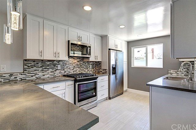 Prepared To Be Wowed, Westside Meet Gardena. Absolutely Nothing Like This In The Sotouthbay. Modern Ultra Chic, Sleek Lines Adore This Custom Warm Contemporary Designed Home With Custom 2-Tone Paint With Shades Of Grey Throughout That Take Advantage Of Natural Light, To Give You Sense Of Open & Bright FloorPlan. Every Bathroom & The Kitchen have their Own Unique Designs & Use of Unique Mosaic Glass & Marble Tiles, Along With Low Maintenance Porcelain Tile With Modern Look, Unique Quartz Counters With Rectangular Under-mount sinks in Bathrooms, Double Stainless steel sink In Kitchen, Modern Satin Nickel Widespread Fixtures in Bathroom, modern Kitchen Faucet. Master Bathroom With Dressing Ara Double Sink Vanity. Formal entry Glimmers with White Oak Athens Silver Marble 12x24 Tile. Step in To Formal Living Room, With Remote Ceiling Fan & Recessed LED lights. An Open Family Room, Dinning Room & Gourmet Kitchen Perfect For Entertaining and Growing Families, This is the Hub of the House. Family room Features Vaulted Ceiling With Open Beam Ceiling With A Rustic & Modern Fusion Designed Arched Fireplace with Concrete & White Oak Athens Silver Cream Marble Is A Stunning Work Of Art. Entertainer's Delight Modern Kitchen With White Shaker Cabinets Designed For Effeminacy & Function, Grey Quartz Counters Custom Backslash, New Stainless Steel Appliances. Wide Plank Premium Laminated Floors Are Stunning Along With Tall White Baseboards. 2-Car Attached Garage With 220-Car Charger