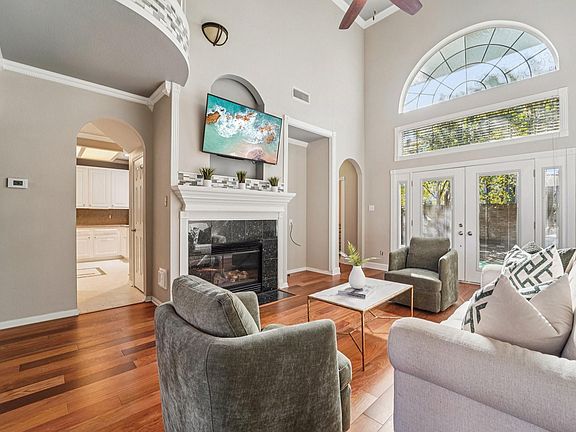 Gas fireplaceHigh ceilingsGranite countertopsCul-de-sac lotCrown moldingUtility roomAmple storage