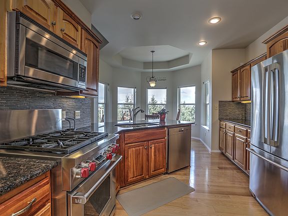 Fabulous Hoyt Ranch custom home providing 6.5 acres, spectacular territorial & city views and many desirable upgrades throughout. Natural hardwood flooring, vinyl windows, partial automatic blinds. Kitchen boasts a Wolf Range, convection oven, granite, stainless steel appliances, pantry & eating bar. Comfortable living room with gas fireplace, stone mantle & built-ins. Formal & informal dining rooms. Main floor master bedroom suite has views, black-out blinds, walk-in closet, double sinks, garden tub & stand-up shower. Main floor laundry. Finished walkout basement with extra living/guest space, craft room with cork flooring & lots of storage. Showcase 30 x 70 shop was just completed in 2015, is partially insulated & will leave you in awe with its custom finishes including a Lopi 3-chamber wood stove, 12' automatic doors, ample RV storage & amazing construction quality. Professional landscaping with eye-catching foliage, spring-fed Koi pond & fruit trees. View Virtual Tour under "Facts"