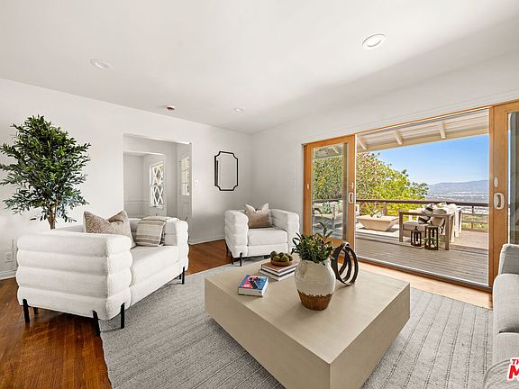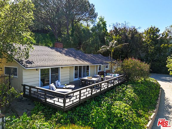 Welcome to 14423 Mulholland Drive, a private, gated Mid-Century Storybook Ranch perched above the valley with sweeping panoramic views of Los Angeles. Set back from iconic Mulholland Drive, this 1,622 sq ft home blends vintage charm with modern comfort. It is beautifully maintained and features original hardwood, black slate, checkered floors, and a classic Mid-Century layout that flows effortlessly inside and out. The kitchen retains its original design with stainless steel appliances and vintage cabinetry. Step out to an expansive deck (aprx 600sf) to enjoy stunning valley views perfect for morning coffee or sunset entertaining. The lush, landscaped yard offers peaceful seclusion and space to relax or host. Additional features include central AC/heat and a full laundry room with a washer and dryer. This is a rare opportunity to own a piece of Mid-Century architectural history in a truly iconic location.