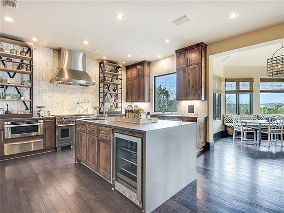 ~2.4 acres, ~240' Lake Travis waterfront, this waterfront beauty (deep side) is an exception to the rule. Huge level lot, expansive lake views, designed to the nines with a very functional floor plan. Balsatina counters, steel and antique wood accents, Wolfe range, Subzero refrigerator. Over 4000 sf of covered outdoor entertaining including negative edge pool, over the top summer kitchen, fire pit. Separate guest house. Located at Windy Point, close to shopping and commute to downtown.