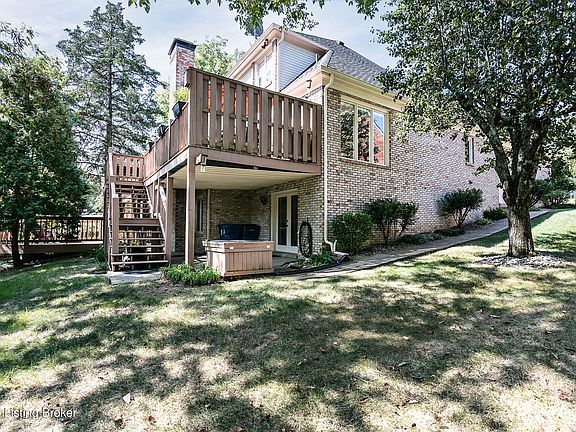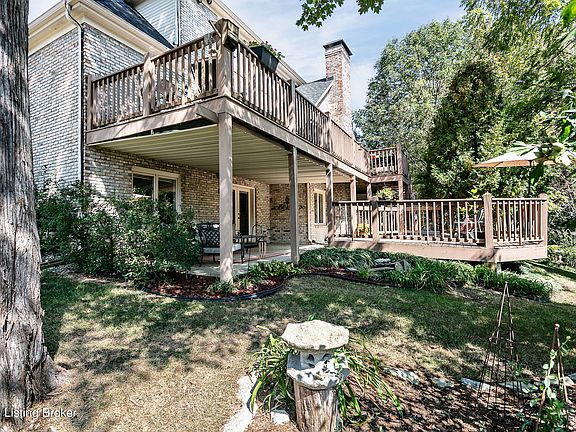 Beautifully maintained Lake Forest home offering over 4,000 sq. ft. of finished space with a thoughtful floor plan. The first-floor primary suite features a spacious bath with dual closets, including a stunning custom walk-in with a granite-topped island, chandelier, and extensive built-ins. The main level also includes hardwood floors, crown molding, a formal dining room, updated kitchen with custom cabinetry, granite counters, tile backsplash, and butcher-block island, plus a cozy living room with built-ins and a brick fireplace with gas insert. Upstairs, three large bedrooms and two full baths surround a central loft. The walkout basement adds a family room with fireplace, office, full bath, and 1,200 sq. ft. of unfinished workshop space. Outdoor living includes a two-tiered deck, covered patio, 220 power for a hot tub, and a water feature with a creek along the rear property line. In pristine condition, with pride of ownership evident throughout, this home is situated in one of Louisville's premier neighborhoods with pools, playgrounds, tennis, trails, lakes, and the Arnold Palmer-designed golf course.