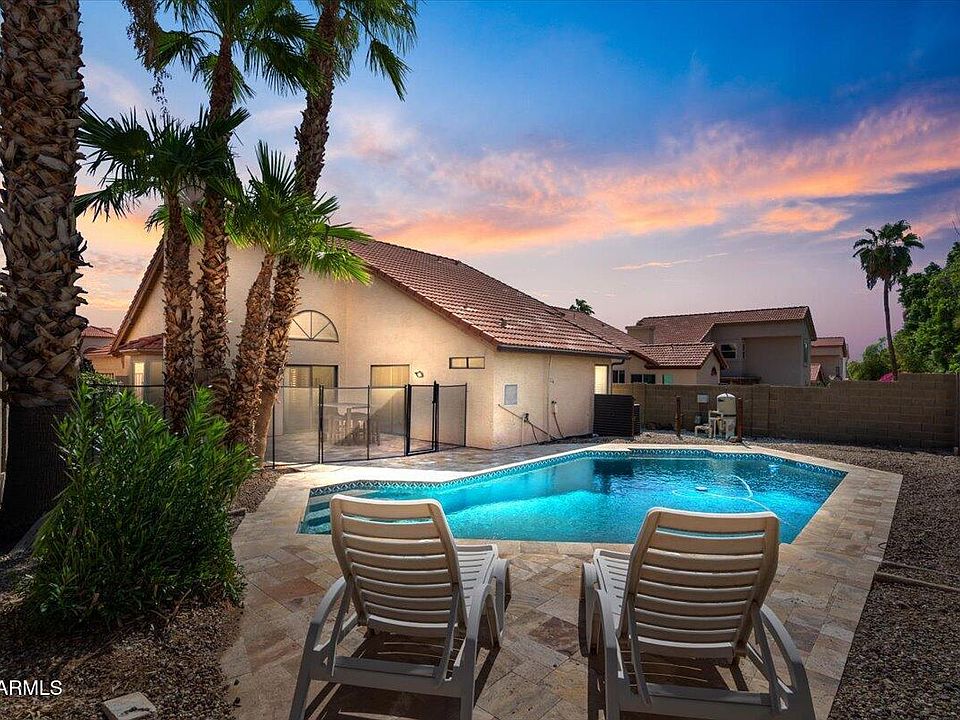 Don't miss out on this 3 bed 2 home with a flexible loft space! All bedrooms are on the 1st floor! Inside you'll find vaulted ceilings, plantation shutters in all the right places, good sized bedrooms and a kitchen that opens to the primary living space! The outside patio is decorated with travertine pavers and great for entertaining! Relax on the sun deck while overlooking the sparkling pebble-tec pool. This home also has all the mechanicals taken care of!!! AC and roof replaced 2020, water heater replaced 2024, Pool remodeled 2020! Floors have also been recently updated! Close to schools, shopping and freeways! You will also have access to all of Mountain Park Ranch's amenities! Walking/Biking paths throughout the neighborhood, volleyball, tennis and pickleball courts & multiple pools