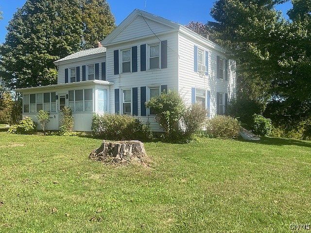 Step back in time with this charming 1890 farmhouse offering space, character, and endless potential. Situated on 8 acres, this 4-bedroom, 2-bath home highlights a ton of natural woodwork throughout and features a spacious layout with a large living room, additional family room, and a first-floor room currently used as a sewing room that could easily serve as a 5th bedroom or office. A closed 3-season porch adds extra living space, while the updated windows bring in plenty of natural light.