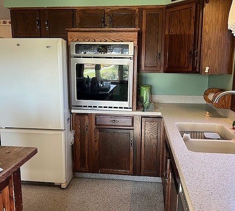 The kitchen includes a newer built-in wall oven, and all appliances stay. Heating is provided by hot water baseboard, and a partial basement with a Bilko door allows access for additional storage. A detached 2-car garage provides even more storage and includes space for a workshop. The property is hooked up to public water but also has two wells on site. Outdoors, enjoy a large yard that extends down to a Creek.