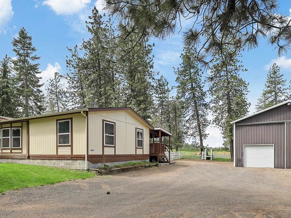 Exceptionally maintained Turnkey Country Home.1848 sq ft Spacious 3 bedroom 2 bath. Wonderful large dining room and large covered deck. Great 32x40 shop with 14 ft rv door and loft and lean-to area. Apx 20 gpm well .Premium foundation with Cement block skirting. 5.26 acres with ample fenced pasture area. Located on school bus route and county maintained road 10 minutes to a boat launch on Long Lake. Not to far from either Spokane, Airway Heights or Nine Mile Falls services, medical, airport, entertainment and shopping!!
