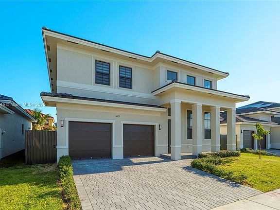 Exquisite new residence in a prestigious neighborhood. This remarkable home showcases an open-concept design with soaring ceilings and expansive impact windows, filling the interiors with natural light. Featuring 5 spacious bedrooms and 4 elegantly appointed bathrooms, it offers both comfort and sophistication. The gourmet kitchen is adorned with granite countertops, premium stainless steel appliances, and seamlessly connects to the grand living area—ideal for refined entertaining. The main level includes a guest suite with full bath for added convenience. Upstairs, the luxurious primary suite boasts two walk-in closets and a spa-inspired bathroom. Outdoors, a generous patio and manicured lawn create the perfect setting for relaxation and gatherings.