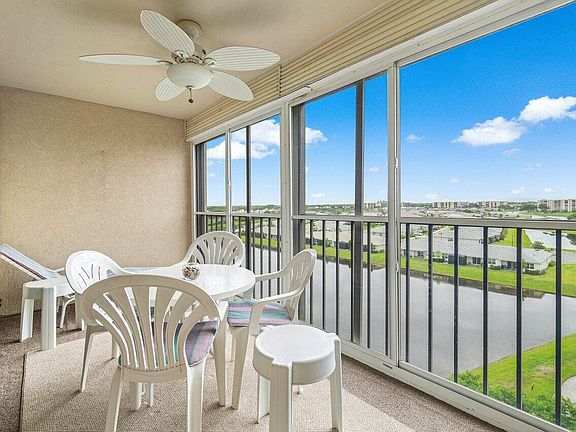 Rarely available corner penthouse condo with full impact glass windows and sliding glass doors, offering fabulous long water views. Move-in ready and turnkey for your immediate enjoyment. This spacious 2-bedroom, 2-bath condo includes a washer and dryer, extra storage, a walk-in closet, and dual sinks in the main bath. The unit is light and bright, featuring an eat-in kitchen with stainless steel appliances and neutral tile floors. NEW AC. The newly renovated clubhouse is designed for an exceptional resident experience, featuring a fantastic showroom with live entertainment, a beautiful ballroom hosting DJ parties twice a month, several pickleball courts, HarTru/clay tennis courts, Bocce ball, paddle tennis, an indoor pool, and a billiards room, ping pong tables, multiple cards rooms, multiple cards rooms, woodworking shop, a craft room, a beautifully remodeled men's and lady's locker room. Each section has its own satelite pool. Located in Famed Delray Beach with close proximity to everything Delray Beach has to offer, beaches, restaurants, entertainment, shopping and more