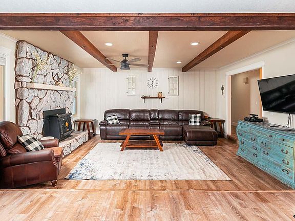 Welcome home. Love this open concept floor plan with wood beams and gorgeous Pinterest inspired kitchen. Seating for many people with the deep dining room and room for more at the breakfast bar and convenient pantry adds to the ample space for extras. Lots of light coming in from the extra large slider and windows. Sunken living room has floor to ceiling stone around the wood stove insert. Hall bathroom has just had a uplift. Master suite has beautiful backyard views, custom shower and walk in closet. The BEST part of this home is the outside space! RV or boat covered parking, located at the end of a private street, and the backyard offers firepit and raised deck for the perfect entertainers home.