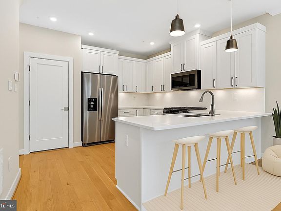 Welcome home to this stunning, 4 year young Toll Brothers end-unit townhome-style condo in the highly sought-after Commonwealth Place at Westfields. Spanning the first two levels, this residence offers 3 bedrooms, 2.5 baths, and a one-car garage, perfectly blending modern luxury with everyday comfort. Step inside to an open, contemporary floor plan featuring a chef’s kitchen with crisp white cabinetry, gleaming quartz countertops, stainless steel appliances, and a large counter with seating. The kitchen flows seamlessly into a bright, inviting living area accented by engineered hardwood floors throughout the main level. A convenient pantry, powder room, and access to the rear-entry garage complete this floor. Upstairs, retreat to the elegant primary suite, complete with a private balcony, spa-inspired ensuite bath, and generous walk-in closet. Two additional bedrooms, a stylish hall bath, and a convenient laundry room round out the upper level. An additional assigned parking space (#53/209) is included, and the home enjoys one of the premier locations within Commonwealth Place—tucked away in a quiet setting yet just a short stroll to The Field at Commonwealth, featuring Wegmans and a variety of dining options. With low community association fees ($260.08/mo) and an unbeatable combination of style, convenience, and serenity, this home offers the perfect modern lifestyle.