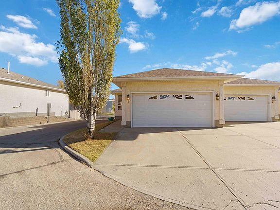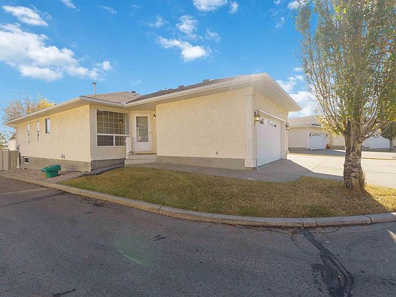 Miller Garden Estates 55+ community welcomes you. Pet friendly Unit 1 is a well cared for half duplex home featuring a great layout. The front foyer greats you w/ its closet space & room for a bench. The living area is generous sized & offer lots of light w/ big bright windows. Also the main floor offers two spacious bedrooms w/ a walk in closet & 4 piece ensuite bathroom. Plus a separate 4 piece bathroom. Bonus main floor laundry room. The kitchen is open concept w/a breakfast nook for dining/entertaining. The walkout balcony leads to the deck w/ green space views & fenced in yard, Perfect for relaxation. The basement is wide open and insulated. The front attached double garage offers parking & storage space. Enjoy great curb appeal w/ side garden & stucco exterior finishing, plus the convince of being the first unit in as you enter the cul de sac. Miller neighborhood has lots of shopping areas, hospital, & main road Manning to connect the main city districts. Welcome to your new joyful home & lifestyle.