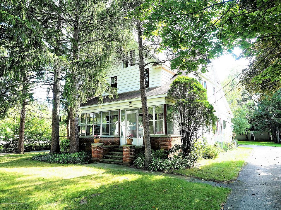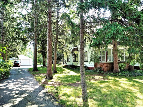 Welcome home to 1443 Haslett Road. This is a classic 4 bedroom, 2 full bath, two-story house. This is a rare opportunity to own an almost 100 year old large Haslett Home with an extra-large, 2 parcel lot. The layout is over an acre in size with tall pine trees and several outbuildings. Many updates have occurred including: Roof 2008; HVAC 2010; water heater 2017. Some minor decor updating could make this large home a gem as you won't often find features like a circular drive, frog pond, fist floor bedroom, beautiful oak bannister and gorgeous staircase in living room, high ceilings, three season room on the front and mud room on the back, rec. room in lower level with faux fireplace, formal dining room with bay window, large country style kitchen with informal eating area, walk-up attic for ample storage, ample closet space, work shop in lower level, rear patio for relaxing and outdoor sitting, oversized 2 car det garage