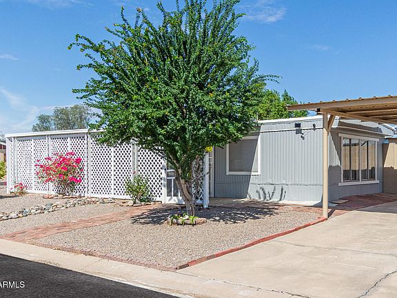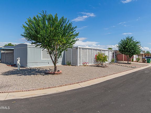 ✨ Corner-Lot Charmer with Community Park Access! ✨ on OWNED Land! Don't miss this inviting 2-bedroom manufactured home ideally located near the I-10 & 303 freeways, with schools, shopping, and dining just minutes away. Exterior features include a covered carport, RV gate, block fence for privacy, low-maintenance yard, and a welcoming front patio perfect for morning coffee. Step inside to a bright living room with stylish wood-look flooring and window blinds, plus convenient inside laundry. Both bedrooms are cozy and well-sized for comfort. The backyard is designed for relaxing or entertaining with a covered patio and two storage sheds. Residents also enjoy access to a nearby community park. Move-in ready and full of potential!