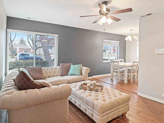 Ideally located updated ranch home on quiet tree lined street! Walking distance to restaurants & shops, just one block to your morning coffee at Dunkin Donuts! 2 minutes from 290 & 294 expressway to get you where you need to go. Enjoy single floor living on this large landscaped lot with oversize 2.5-car garage, patio and large backyard. Updates include brand new HVAC, new roof on house and garage, new siding on garage, new wood porcelain floors throughout, new thermal pane windows, updated electrical and new boiler for super low utility bills! Inviting living room with adjacent dining room, nice size kitchen includes stainless steel appliances and tile backsplash. Generous bedroom sizes, both offering the comfort and convenience of lighted ceiling fans. Full bath with pedestal sink. Convenient pull-down stairs to attic for easy storage. Don't miss this opportunity! Perfect location AND an unbeatable price make this move-in ready ranch a MUST SEE!