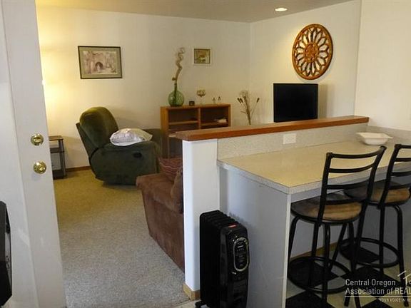 Cute and immaculate condo. Rents furnished for $1,150/mo and HOA dues are $156/mo. HOA dues cover water/sewer/garbage and grounds maintenance. Nice size living area and full kitchen. Bedroom and bathroom are spacious with large closet and washer/dryer. Westside location is excellent for access to COCC, shopping, public transportation, and restaurants. Includes covered parking and storage space. Enjoy those hot afternoons on your cool covered patio. Very quiet area.