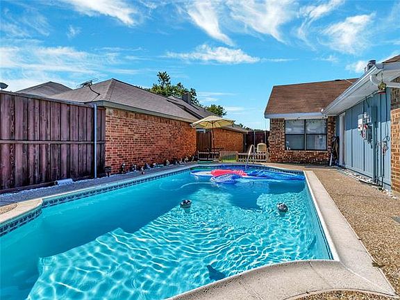 Cute 3 bedroom home with wonderful pool in Mesquite. This energy efficient home has solar panels that will convey with the home which will benefit the Buyer. Backyard fence was redone with an automatic gate that completely encloses the driveway and house. Enjoy this open concept floor plan with split bedrooms, double vanities in bath, and recently replaced vinyl luxury flooring. Extra insulation was added to the home for energy conservation. Gutter guards were added to prevent water damage to roof. This house has a lot to offer and is convenient to downtown Dallas, shopping and schools in highly acclaimed Mesquite ISD. Easy access to US80 and I635 Ring Video doorbell included with house.