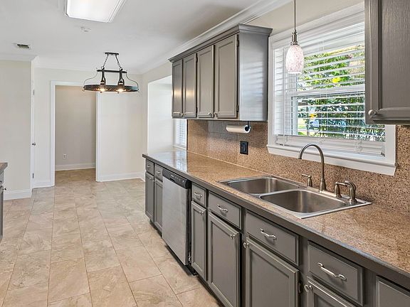 This updated home offers peace of mind with a new roof and windows in '23, and new A/C installed in '22. The primary suite features an oversized travertine shower and large walk-in closet, and the home has no carpet throughout. A flexible formal dining room can serve as an office, while the kitchen provides plenty of cabinets, counter space, and a breakfast area. Other highlights include a sunroom/breezeway, fully fenced oversized lot, and a workshop with electricity and potential for water. Refrigerator remains. Located in Flood Zone X and did not flood.