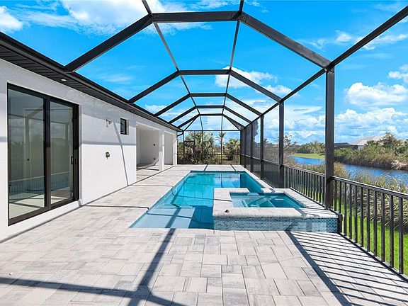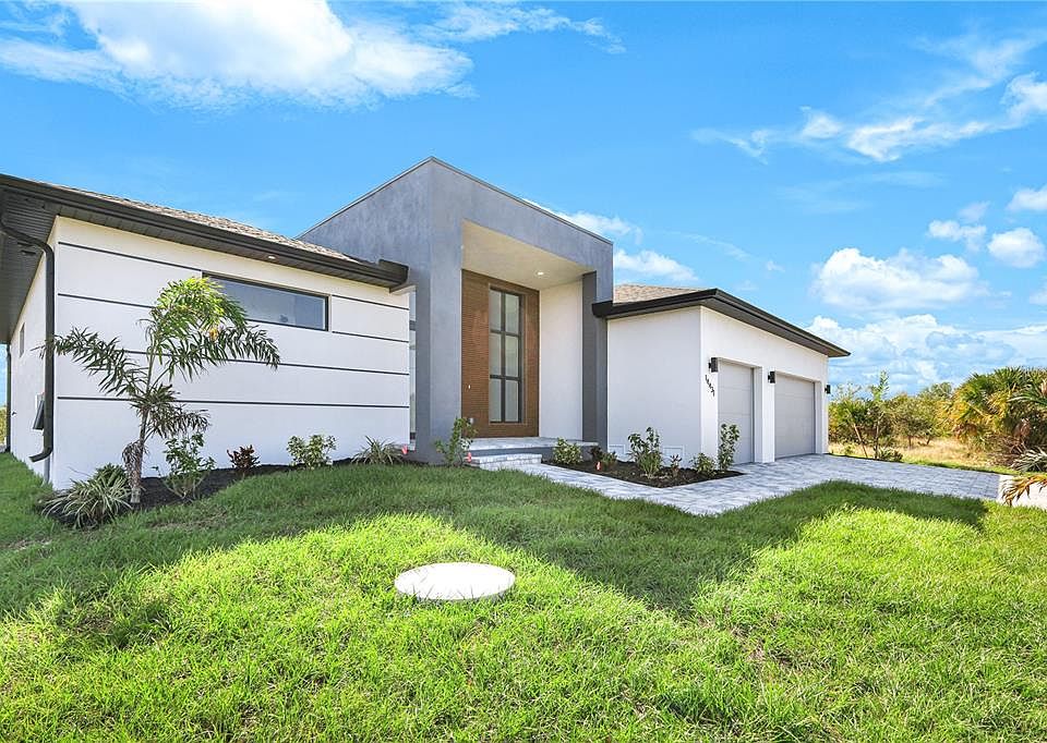 LEASE-TO-PURCHASE OPTION AVAILABLE. This BRAND-NEW, CUSTOM-BUILT HOME radiates QUALITY CRAFTSMANSHIP and MODERN ELEGANCE from the moment you arrive. The PAVER DRIVEWAY, GRAND ENTRANCE, and FLOOR-TO-CEILING WINDOWS WITH SLATTED WOOD ACCENTS immediately set the tone for the stunning design found throughout. Perfectly situated on a SALTWATER CANAL WITH DIRECT GULF ACCESS in the highly desirable boating community of South Gulf Cove, this 3-BEDROOM + OFFICE, 3-BATHROOM, RESIDENCE — featuring TWO MASTER SUITES — offers REFINED LUXURY and THOUGHTFUL FUNCTIONALITY at every turn. Step inside to discover SOARING VOLUME CEILINGS, 8-FOOT DOORS, and DESIGNER 24” x 48” porcelain tile flooring throughout. The SPACIOUS LIVING ROOM showcases a dramatic TRAY CEILING WITH RECESSED LIGHTING and a THREE-PANEL SLIDING GLASS DOOR that opens to the COVERED LANAI, creating a bright and seamless indoor-outdoor living experience. The primary suite is a private retreat, featuring lanai access, a Tray ceiling, TWO walk-in closets, and a SPA-INSPIRED BATHROOM with DUAL VANITIES, QUARTZ COUNTERTOPS, and a TILED SHOWER WITH DUAL SHOWERHEADS. The JUNIOR PRIMARY SUITE (perfect for guests or in-laws) includes its own ENSUITE BATH, a LARGE WALK-IN CLOSET, and PRIVATE POOL DECK ACCESS, offering comfort and independence for your visitors. At the heart of the home, the CHEF-INSPIRED KITCHEN dazzles with HIGH-END STAINLESS STEEL APPLIANCES, TILE BACKSPLASH, WALK-IN PANTRY, and a WATERFALL-EDGE QUARTZ ISLAND accented by elegant PENDANT LIGHTING and SLATTED WOOD DETAILING. Sleek BLACK HARDWARE adds a modern finishing touch. Enjoy YEAR-ROUND PEACE OF MIND with HURRICANE-IMPACT WINDOWS AND SLIDING GLASS DOORS throughout. The outdoor living area is equally impressive, featuring a spacious covered lanai, SUMMER KITCHEN hookups, OUTDOOR SHOWER, and a POOL AND SPA with a SUNDECK perfect for lounging, splashing, or cooling off with your furry friends. The 60' wide, WRAP-AROUND PAVER POOL DECK and HEAVY-DUTY UPGRADED CAGE (6” FRAMING) complete this exceptional OUTDOOR OASIS. Each of the three bedrooms offers DIRECT POOL ACCESS, making this home ideal for both ENTERTAINING and RELAXED FLORIDA LIVING. The OVERSIZED 3-CAR GARAGE (32’ x 20’, 720 SQ. FT.) includes HURRICANE-RATED DOORS and houses the HVAC handler and water heater. Located just minutes from GOLF COURSES, BEACHES, MARINAS, WORLD-CLASS FISHING, and ENDLESS WATER ADVENTURES, this 1,851 SQ. FT. (UNDER AIR) home feels even larger thanks to its OPEN DESIGN AND SOARING CEILINGS. Bring your BOATS, RVs, AND TRAILERS — the South Gulf Cove Community offers TWO BOAT RAMPS, FIVE PARKS, and is GOLF CART-FRIENDLY, making it the ultimate destination for OUTDOOR LIVING AND COASTAL ADVENTURE. This remarkable property truly has it all — LUXURY, COMFORT, AND PEACE OF MIND — all at an incredible value. Don’t miss your opportunity to call this South Gulf Cove GEM your new HOME IN PARADISE. call today to schedule your private tour!
