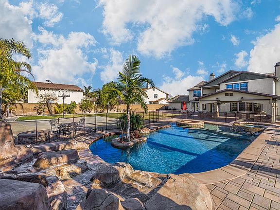This beautiful home is located in College Park Community is one of a kind. The home features over 4,766 square feet of living space on over a 20,000 square feet lot. This home is packed with amenities. This home features 5 spacious bedrooms, 4 and a half bathrooms, full size kitchen, and a bonus loft area. As you walk onto the home, you will see over a 40' drive-way with a gate for RV Parking. Downstairs the home features an office, formal living room, and a formal dining room. The spacious kitchen and living room is where you will be spending majority of your time with your family. Furthermore, there is a down-stairs bedroom and a private bathroom. When you head upstairs through the dual staircase, you will be able to access 4 bedrooms perfect for a family, with space for a guest bedroom. The master bedroom features 2 full size closets, a tub, and a dual standing shower. The master bedroom also has a bonus loft area + private balcony over-looking the spectacular backyard. If you enjoy being outdoors, then this backyard is a complete dream come true. This home's backyard features an outdoor kitchen, fully equipped with a stove, mini-fridge, and a BBQ. There is a basketball court, a fire-pit, a full size swimming pool with an in-pool fire feature as well. With over 20,000 square feet lot, there is plenty of space for an entire family looking to make this a home. The majority of the home features marble flooring and wood flooring throughout the entire house. This home is perfect for a big family, that wants to live in a safe Neighbhor hood close to all of City of Chino's amenities. Just minutes away from Grocery Store, 71 and 60 Freeway, and Chino Shoppes. This home is ready to move-in and comes FULLY furnished with outdoor furniture ready to move-in. Schedule a tour for this home today! Renter is responsible for all Utilities. Pet Friendly - Pet Rent + Pet Deposit required separately. Must qualify for Income + Credit Score Renter is responsible for all Utilities, Landscaping, Pool Service, and HOA