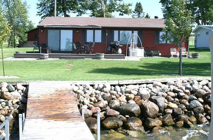 By day play in the crystal clear waters of Big Cormorant Lake and by night watch the sunset from the lakeside deck. Large level lot with 100 front feet on Tradewinds Beach with nice home, 2 bdrms, 1 bath, 1056 sq ft, 2 car garage and storage shed. This home features maintenance free siding and is clean and ready to move in. Dock and most furnishings included. A must see on Big Cormorant Lake.