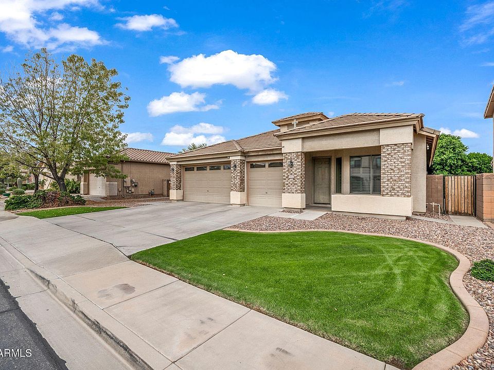 Introducing a popular model home by Fulton Homes. Great floor-plan with a very nice lay out and comes with 4 bedrooms 2 bath, with a Jack & Jill bath room set up. Large living room leading to the kitchen area and there you will step into a huge family entertainment room. You will also find a large master bedroom and 3 spacious size bedrooms that made this model very attractive to buyers. Equipped with plantation shutters, upgraded cabinets plus other extras. Included is a large R V gate for extra vehicle parking. Close to schools, shopping, entertainment and other venues. Short drive to loop 303, situated in a very nice family neighborhood.