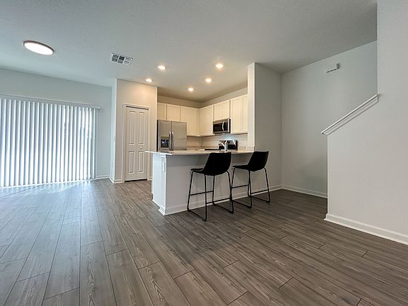 Welcome to your dream townhome in Alachua, FL. This stunning 3-bedroom, 2.5-bathroom property is a perfect blend of style and comfort. The open-concept design is complemented by luxury vinyl wood plank flooring, creating a spacious and inviting atmosphere. The kitchen is a chef's dream, equipped with stainless steel appliances, a microwave, dishwasher, and a large single basin sink. The durable quartz countertops and breakfast bar add a touch of elegance. The townhome also features a washer/dryer in unit for your convenience. The bedrooms, located upstairs, are carpeted and feature walk-in closets. The master bathroom boasts dual vanity sinks and a walk-in shower. The property also includes a one-car garage and a covered lanai, perfect for enjoying the Florida weather. The loft adds an extra space for relaxation or entertainment. Experience the comfort of Tara Baywood with this exquisite townhome.