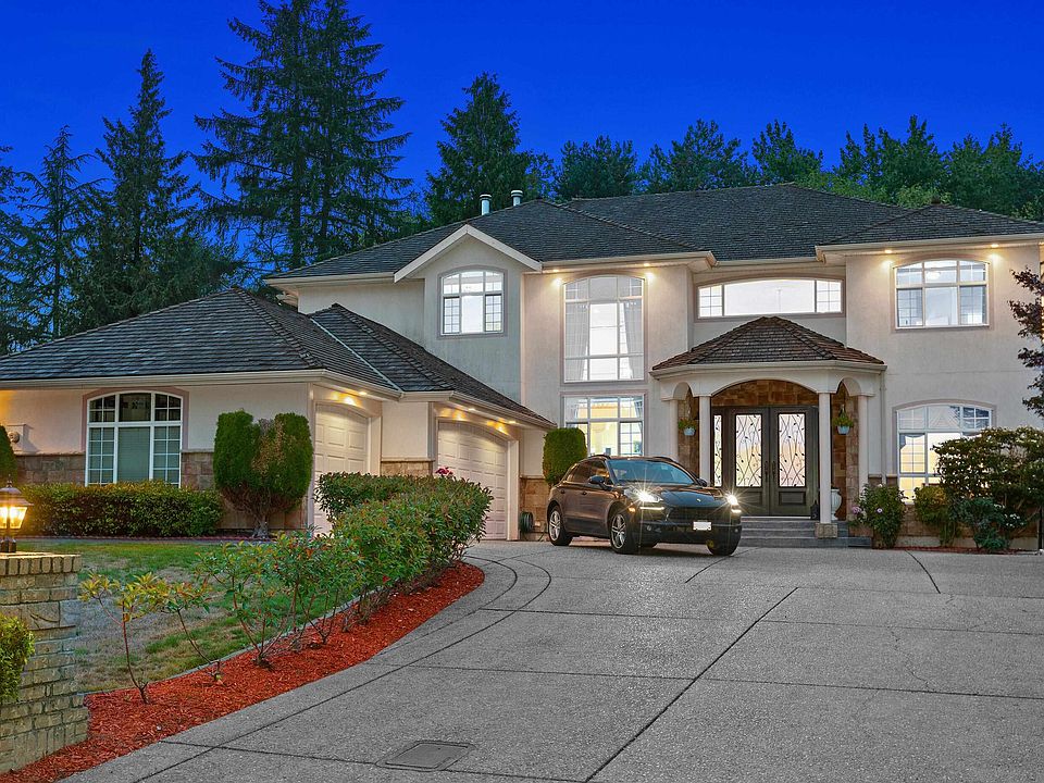 British Manor's 5500+ sqft trophy estate property on 1/3 acre! This custom-built residence is being offered on the market for the first time. The property is nestled on a quiet greenbelt offering a park-like setting, a luscious manicured garden & extended driveway. This home has been very well maintained by the original owners, maintaining its architectural integrity while seamlessly blending modern luxury & old world charm. The dramatic two-story foyer & principal room impress upon entry. Upper level primary suite features french doors, a Juliet balcony, 2 walk in closets, & a 5 piece spa ensuite. 3 add'l bedrm suites & linen room are situated nearby. Theatre w/ auto screen, office, gym, kitchen on lower level, a 3 bay garage.